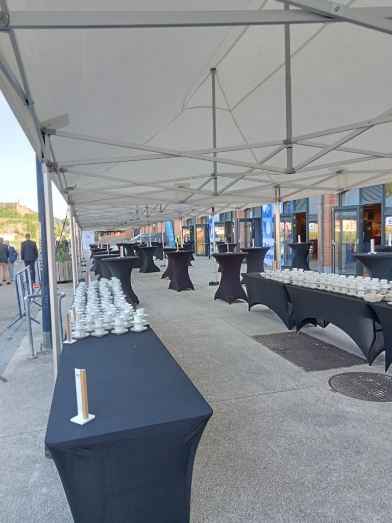 Conditions de location : Nos prix comprennent la LIVRAISON et l'INSTALLATION dans un rayon de 25km autour de MEUX (La Bruyère) A plus de 25km, nous comptabilisons un aller simple à 1,5 €/km HTVA Pas de déplacement de notre part pour les commandes inférieures à 100€ HTVA La vaisselle nous est restitué sale. Nous demandons uniquement de la trier comme elle vous a été remise lors de la livraison. Nos prix sont affichés HTVA